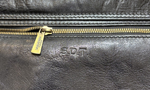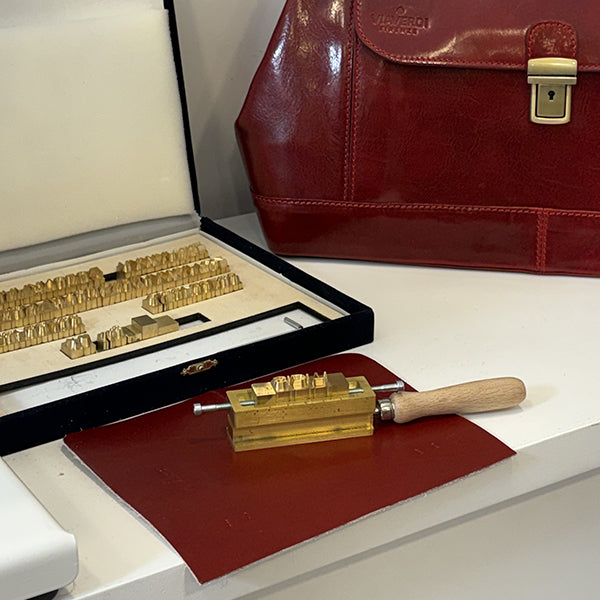 La personalizzazione ViaVerdi nasce così: un carattere in ottone, la pelle, la giusta pressione, il calore. Un gesto semplice e antico che non ha scorciatoie digitali. Puoi scegliere fino a 8 caratteri — le tue iniziali, una data, una parola che conta — e li imprimeremo uno ad uno sulla tua borsa. È un dettaglio minimo, ma cambia tutto: un oggetto diventa il tuo oggetto.