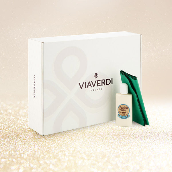 una specialissima crema con il suo morbido panno per stenderla; è stata scelta da Angela per la sua capacità di mantenere la pelle sempre morbida e farla durare a lungo nel tempo.