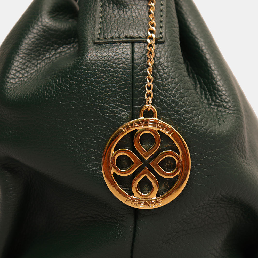 Borsa a Mano con Tracolla VIAVERDI in Pelle Verde Bosco Made in Italy linea Castiglione